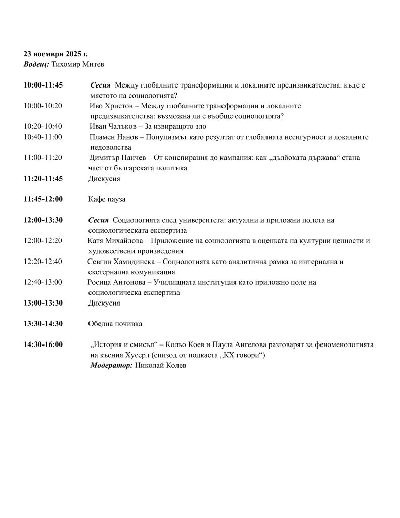 едно възможно реасемблиране на социалното познание в началото на 21 век (изследване на случай)", разработван от екипа на катедра Социология и науки за човека.